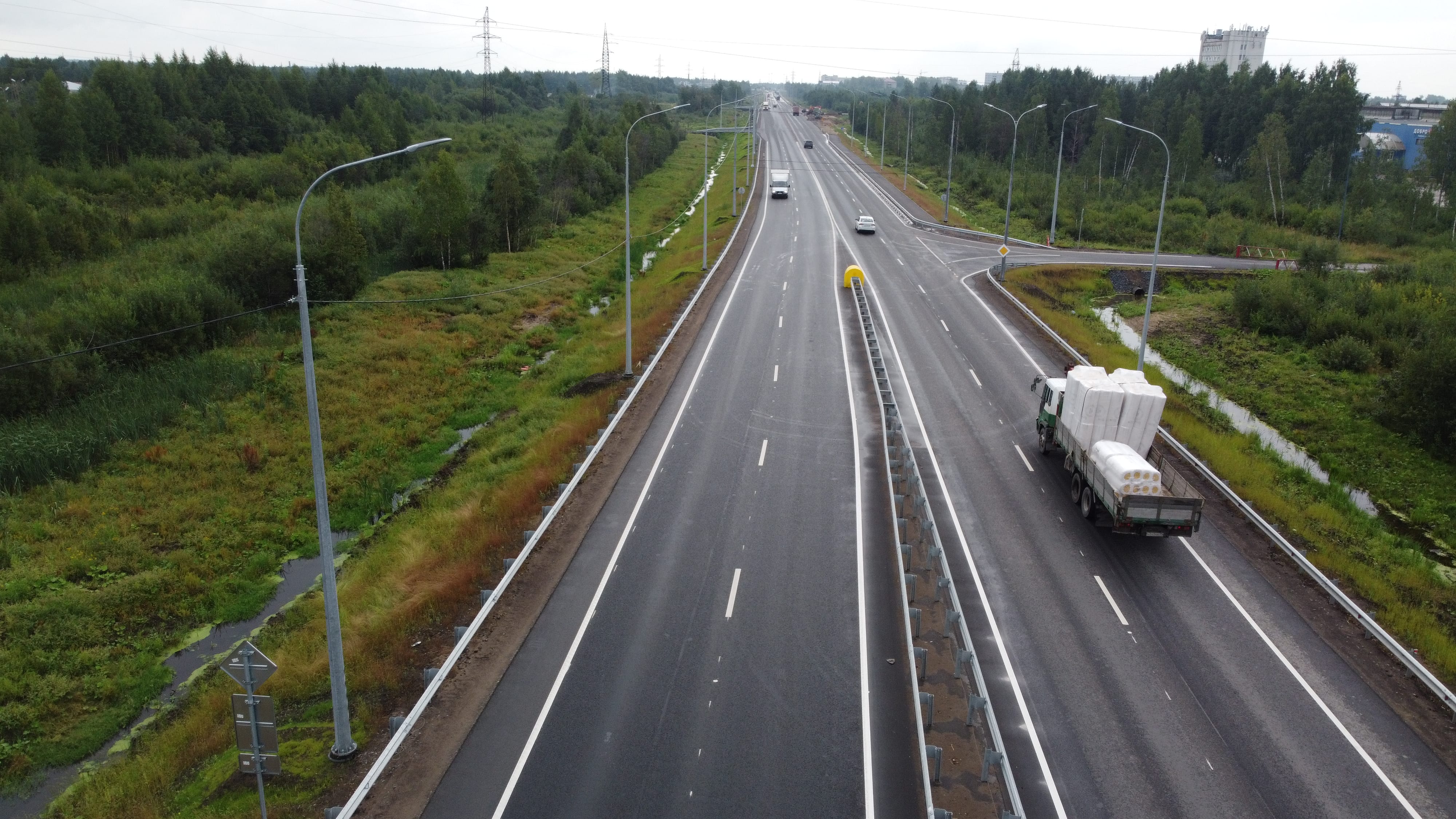 В ходе реализации проекта помимо расширения проезжей части с двух до четырех полос движения здесь устроят барьерно-осевое ограждение, разделяющее транспортные потоки и ликвидирующие самый опасный вид ДТП – лобовые столкновения.  Также на всем протяжении объекта будет смонтировано стационарное электроосвещение.